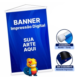 Banner 380g Acabamento Cordinha Madeira e Ponteiras